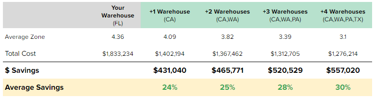 We process your historical shipment data and estimate how much you would save by strategically adding warehouses across the country.
