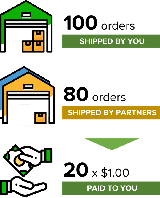 The key to success in fulfilling each other’s orders will be to treat partner merchandise in your warehouse with as much care as if they were your own merchandise (or better). Therefore, we designed our profit-sharing model to be based on your Late Shipment Rate (LSR) and Shipment Defect Rate (SDR).