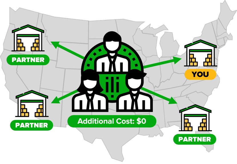 With every seller participating in the workshare program, the costs of fulfilling your orders are offset by you fulfilling the orders for others on the network. This enables you to deliver orders nationwide within 1 day or 2 days via economical ground shipping without making any additional investments or incurring more fixed costs.