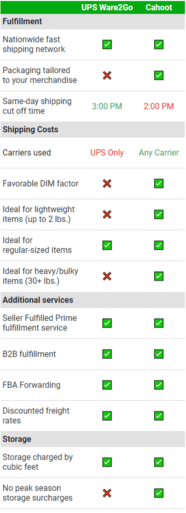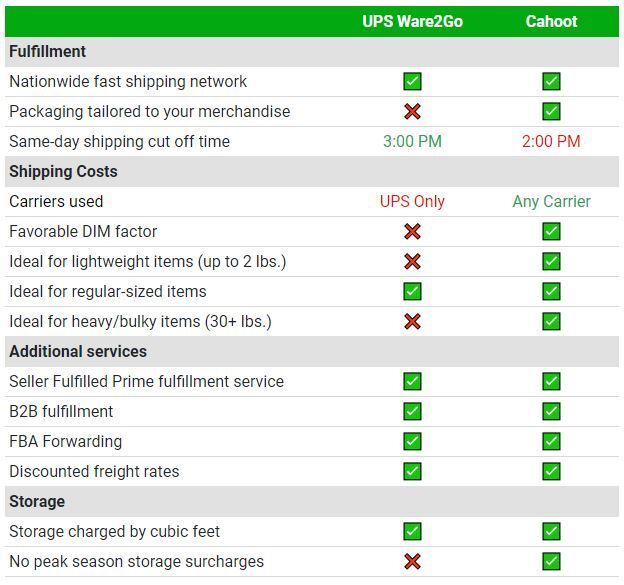 Ware2Go Fulfillment Services Comparison | Cahoot